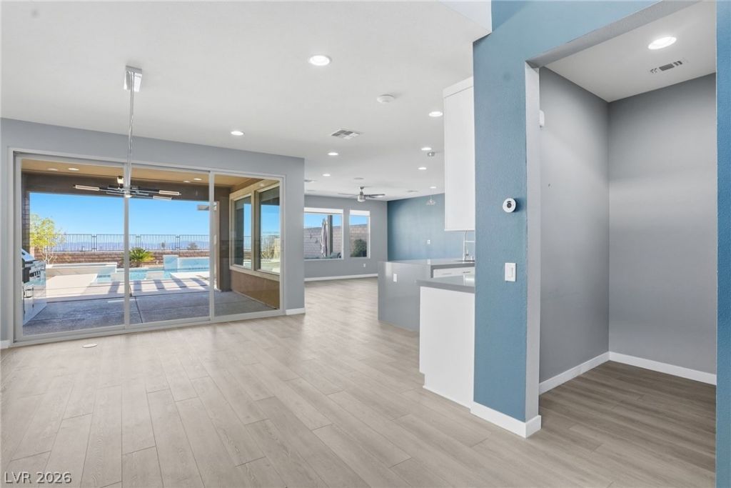 Stunning Pool & Spa Home with Solar & breathtaking views of the Las Vegas Strip. Experience modern luxury living in this beautiful 3-bedroom, 3-bath home with loft and den located in the highly sought-after Reverence in Summerlin West. This home features a gourmet kitchen, stainless steel appliances, and an oversized pantry. The dining area with a sliding glass doors seamlessly connects indoor and outdoor spaces, opening to a covered patio designed for true indoor-outdoor living. The private backyard oasis comes complete with: Built-in BBQ with granite counters, Resort-style pool and jet spa with waterfall, fire pit and strip and city views. Located just minutes from Red Rock Canyon National Conservation Area and the premier dining and shopping of Downtown Summerlin.