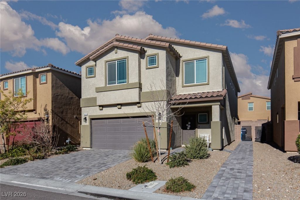 Exceptional 5-bedroom, 3-bathroom home offering 2,643 square feet in the prestigious gated Valley Vista Master Planned Community. SID/LID paid in full. This immaculately maintained two-story residence features dual living areas on both levels for versatile functionality. The gourmet kitchen showcases an expansive island, granite countertops, stainless steel appliances, and generous pantry storage, seamlessly flowing into the inviting great room. Glass doors reveal a landscaped backyard complete with covered patio, synthetic turf, and decorative pavers. Main floor convenience includes a full bedroom and three-quarter bathroom. Washer and dryer included. The oversized two-car garage is equipped with an EV charging station. Prime location provides quick access to I-215, ensuring effortless commuting and connectivity. This turnkey property represents an outstanding opportunity in one of the area's most sought-after communities. Schedule your showing today.