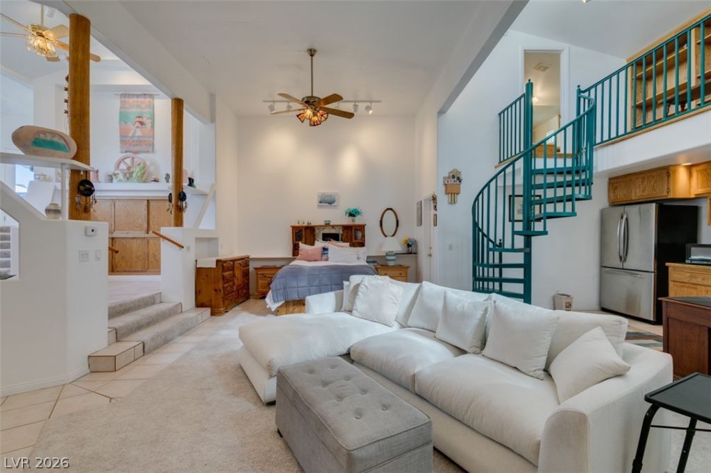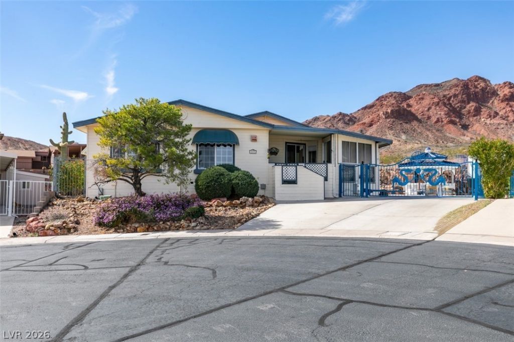 Rare opportunity to own a one-of-a-kind home in a desirable lakeside community, ideally situated on a cul-de-sac and backing to BLM land for added privacy. This unique property features 4 bedrooms, 3.5 bathrooms, a 2-car garage, and ample RV parking. Enjoy outdoor living with a beautiful octagon gazebo, a tiered rock waterfall, and a jacuzzi that the owner invested $16,000 in. The home offers two separate primary suites for added flexibility. The second primary suite includes a climate-controlled closet, ideal for fur storage or a wine collection. Please ensure the closet door is closed after viewing due to the dehumidifier. Additional highlights include a garage equipped with its own bathroom and AC unit, making it a great option for a workshop or workspace. Some portions of the property have not been converted to real property; a copy of the appraisal report is available upon request. Conveniently located just 5 miles from Lake Mead.
