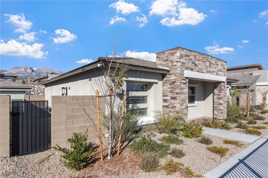 Welcome the exclusive guard-gated Lennar Heritage at Stonebridge in Summerlin, a premier 55+ community. This beautifully upgraded 2-bedroom, 2-bathroom home combines comfort, style, and low-maintenance living in one of Las Vegas' most sought-after neighborhoods. Residents of Heritage enjoy resort-style amenities including a state-of-the-art fitness center, clubhouse, pool, pickleball courts, walking trails, and a vibrant social calendar. Conveniently located near Downtown Summerlin, top-tier golf courses, dining, and medical facilities; this home offers the best of Las Vegas 55+ living. $13K on builder upgrades and an additional $20K in upgrades including tile throughout, all fans & light fixtures, custom primary closet, cabinets in laundry room, Wyze Security System (5 cameras), Epoxy garage floors, Samsung smart appliances: washer & dryer, refrigerator, dishwasher, oven range & microwave. Private side yard & City & Mountain Views from the front porch.